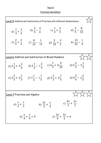 Adding and subtracting algebraic fractions worksheet tes. Differentiated worksheet had levels for each section. This navigation system is still under development. Please could you leave a comment.